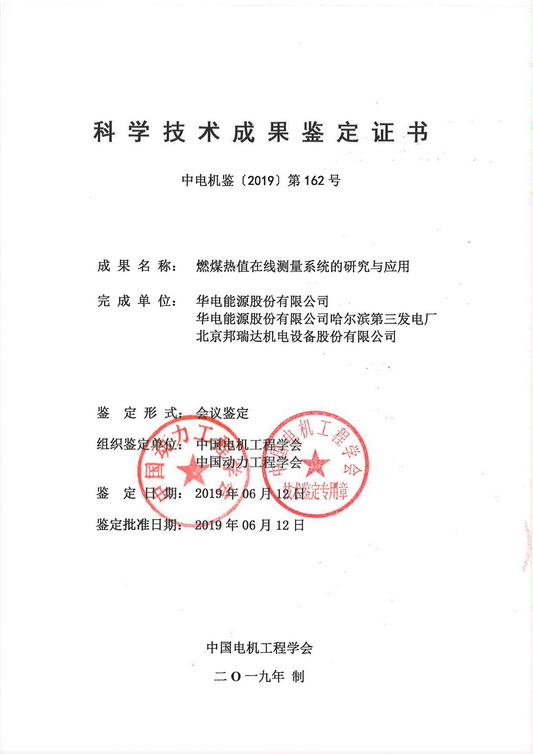 2019年6月12日,中國電機工程學(xué)會和中國動力工程學(xué)會在北京聯(lián)合組織召開了燃煤熱值在線測量系統(tǒng)的研究與應(yīng)用項目技術(shù)鑒定會。