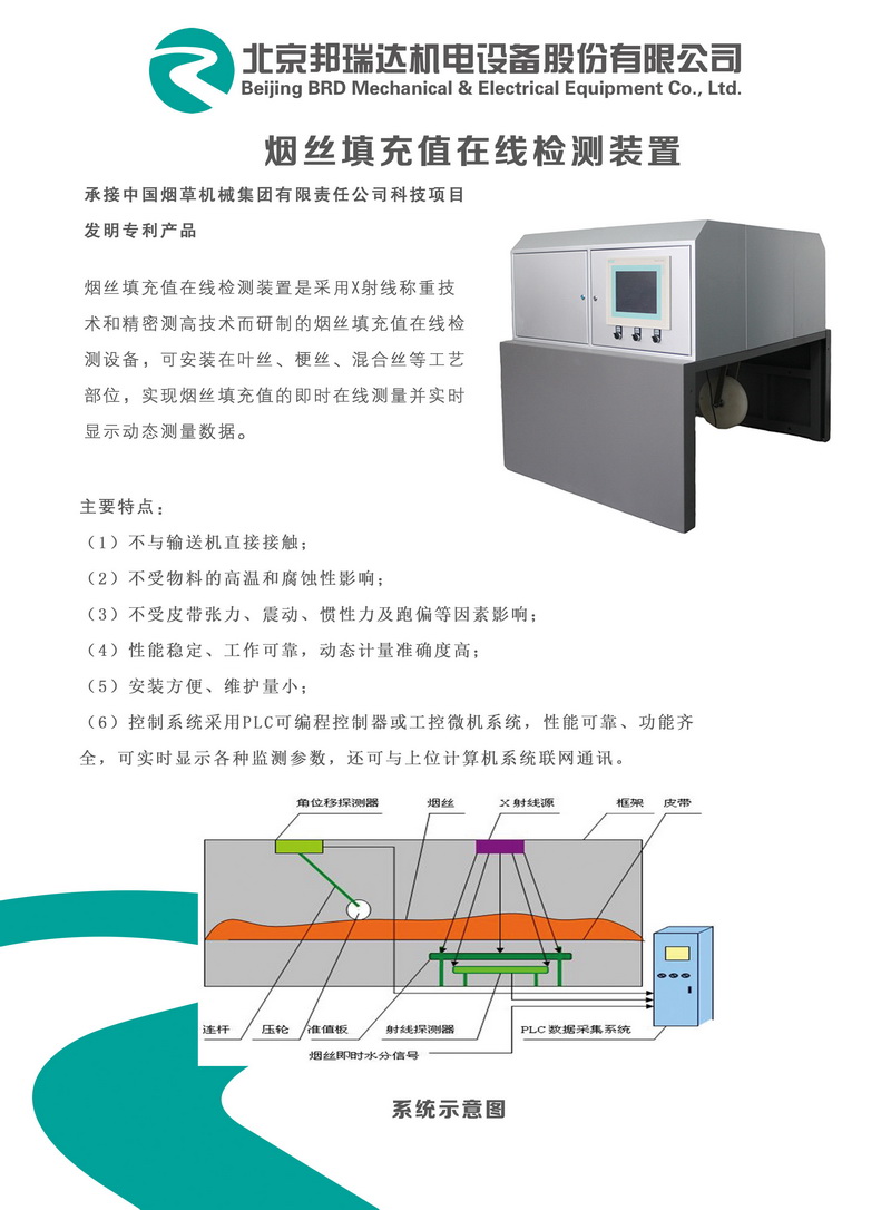 煙絲填充值在線(xiàn)檢測(cè)裝置介紹資料 | |