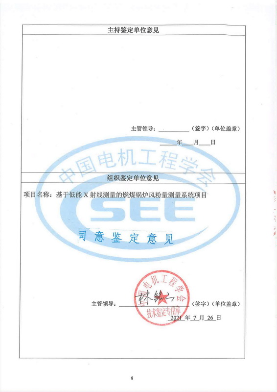 2021年7月20日,中國(guó)電機(jī)工程學(xué)會(huì)在北京組織召開了“基于低能X射線測(cè)量的燃煤鍋爐風(fēng)粉量測(cè)量系統(tǒng)”項(xiàng)目技術(shù)鑒定會(huì)。